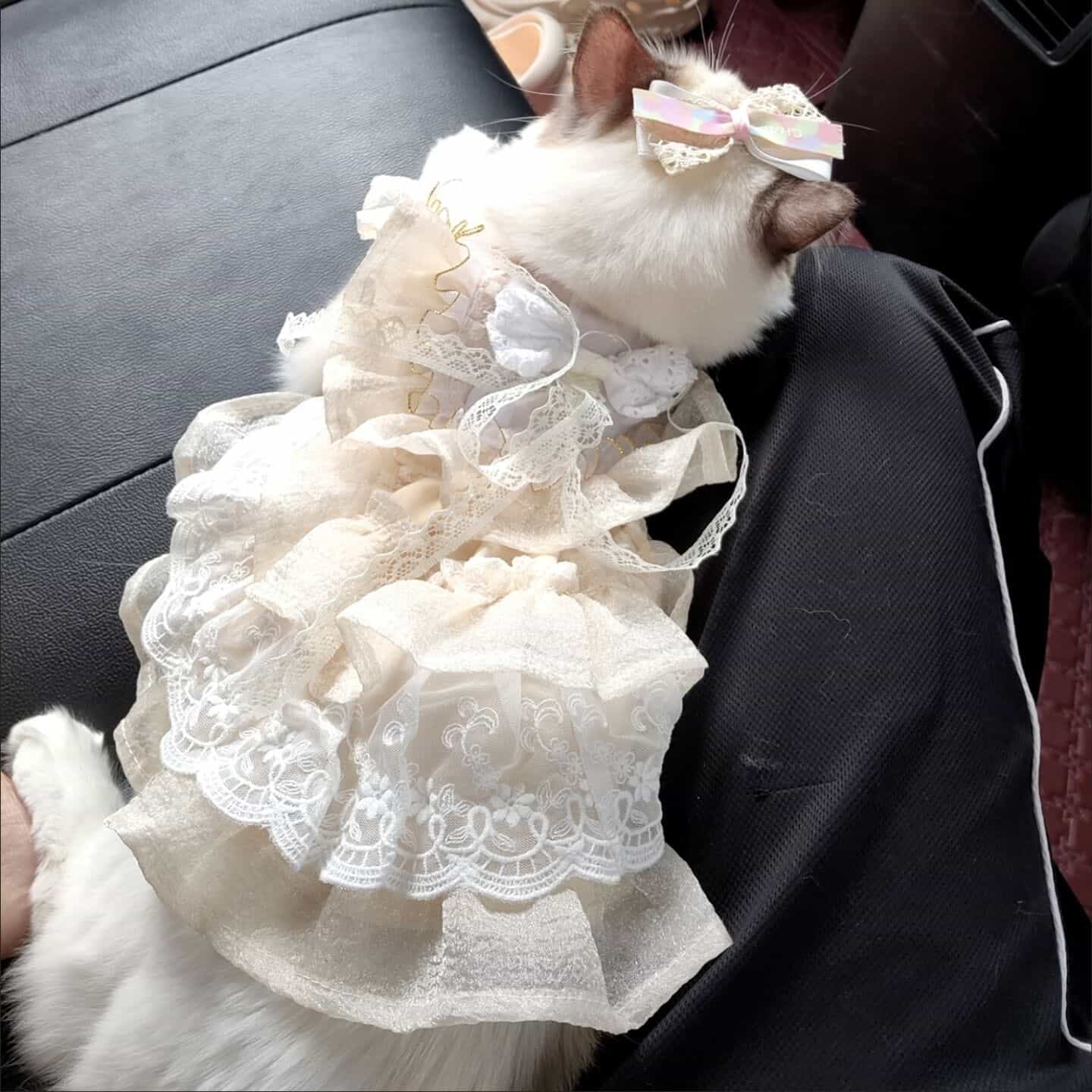 Customizable Elegant Cream Pet Dress with Ruffles and Oversized Bow