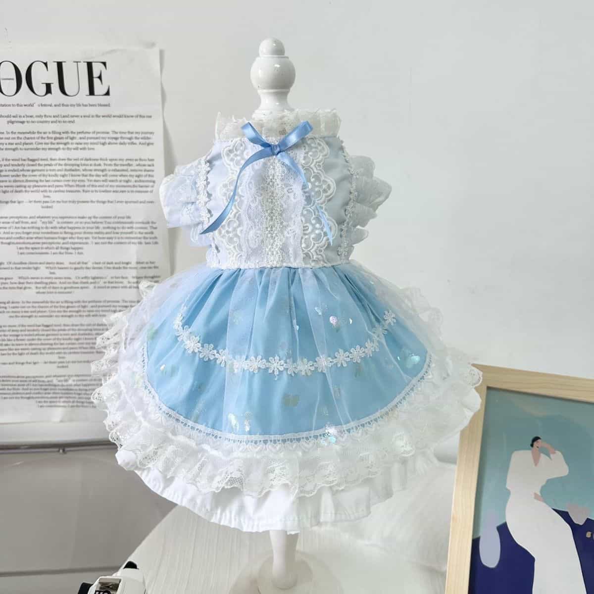 Customizable Light Blue Pet Dress with Sequin Accents and Lace Trim